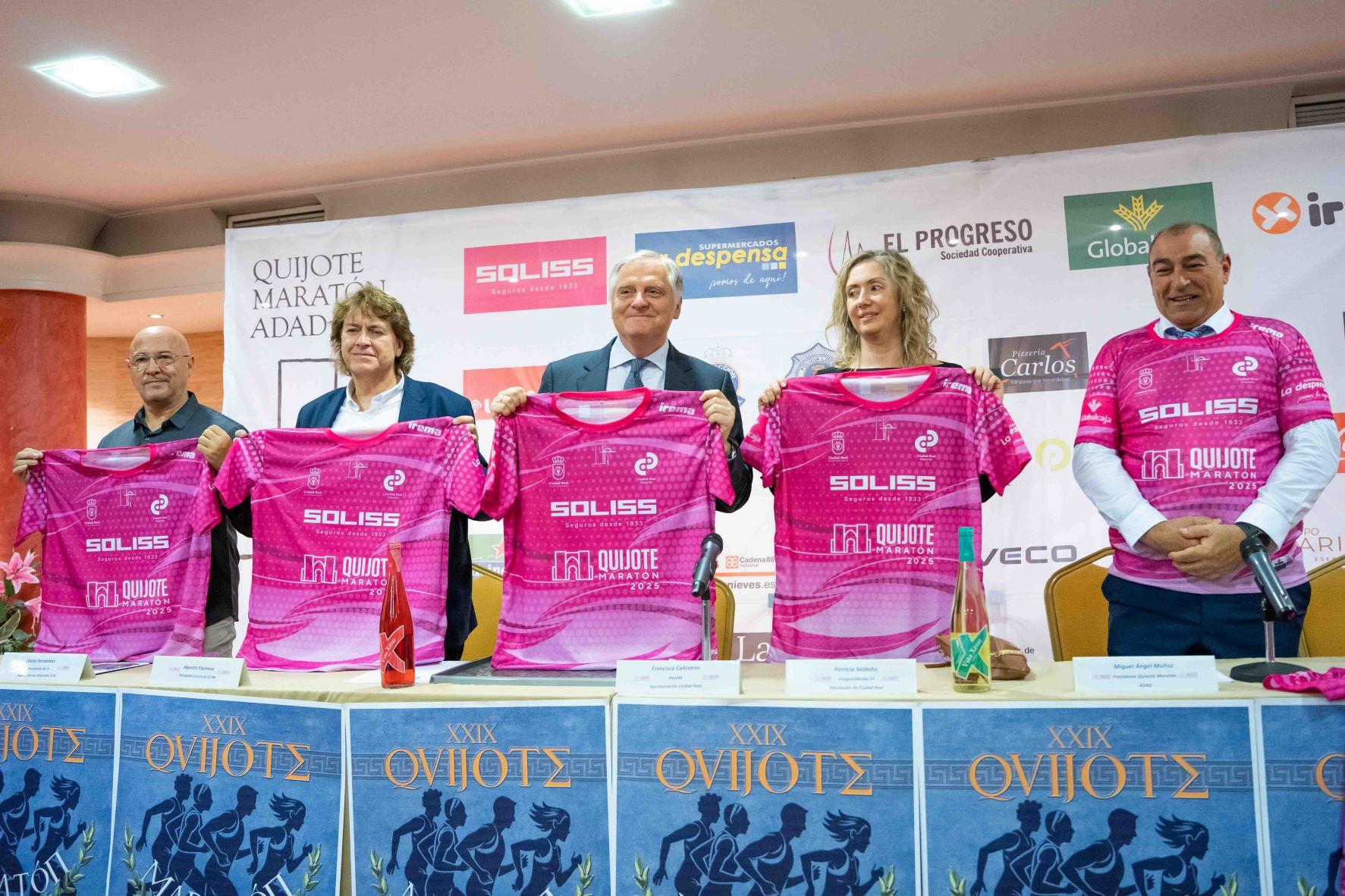 El Quijote Maratón, que engloba tres pruebas, la 29ª Maratón Popular de Castilla-La Mancha, la 14ª Media Maratón y el 10º Diez Mil, y de forma paralela la 23ª Carrera Escolar que organiza la Federación Regional de Atletismo (FACLM), se ha presentado hoy oficialmente en un acto en el Hotel Guadiana de Ciudad Real en el que se han dado a conocer las novedades de esta edición, así como la camiseta de 2025 que se repartirá en la bolsa del corredor.