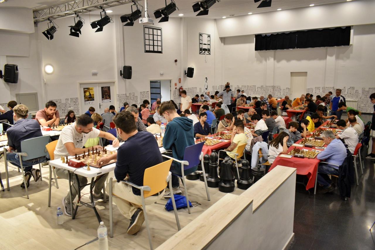 Un salón de actos del centro joven que se llenó de ajedrecistas. La panorámica es espectacular, con la decoración de las paredes de la estancia rodeada de los tableros de madera para enfrentar las mentes de nuestros participantes. Además, se aprovechó el escenario para alzar a los mejores tableros de los dos torneos y retransmitir por Internet las partidas de las mesas de cabeza.