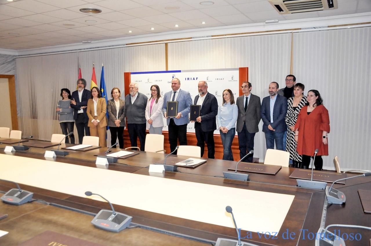 La Universidad de Castilla-La Mancha y la Consejería de Agricultura, Ganadería y Desarrollo Rural han formalizado este viernes en la sede del IRIAF de Tomelloso el convenio que pone en marcha la nueva Cátedra de Transferencia de Conocimiento e Innovación Agraria, un instrumento académico y técnico con vigencia hasta 2028 y una financiación que supera los 184.000 euros, destinado a impulsar la innovación, la digitalización y la formación especializada en el sector agrícola y ganadero de Castilla-La Mancha.