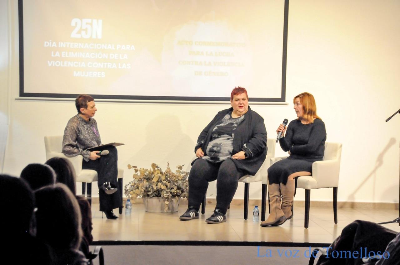 Con el salón de actos de la Biblioteca Municipal Francisco García Pavón completamente lleno, la Asociación de Mujeres Víctimas de Violencia de Género “Sin Miedos” celebró este martes un acto con motivo del Día Internacional para la Eliminación de la Violencia contra las Mujeres (25N). El evento, organizado junto al Ayuntamiento de Tomelloso y Fundación Ceres, sirvió para sensibilizar y reforzar el compromiso social contra esta lacra, dando voz a las fuerzas de seguridad, a representantes institucionales y, especialmente, a las víctimas. Acudieron la teniente de alcalde, Eloísa Perales y la edil del equipo de Gobierno, Carmen López; la presidenta de Ceres y numerosos voluntarios y voluntarias de la fundación.