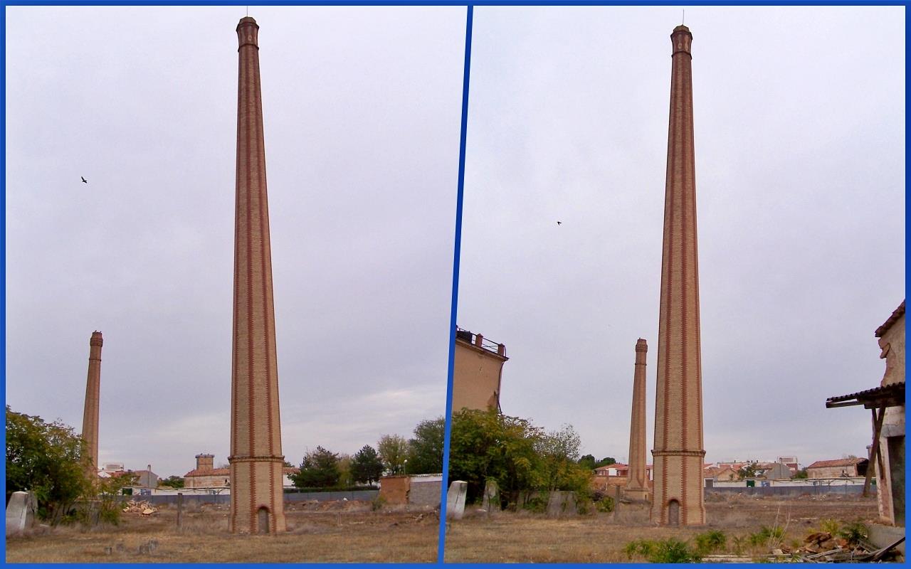 impresionante: Dos chimeneas de una antigua destilería de vino, una de casi 20