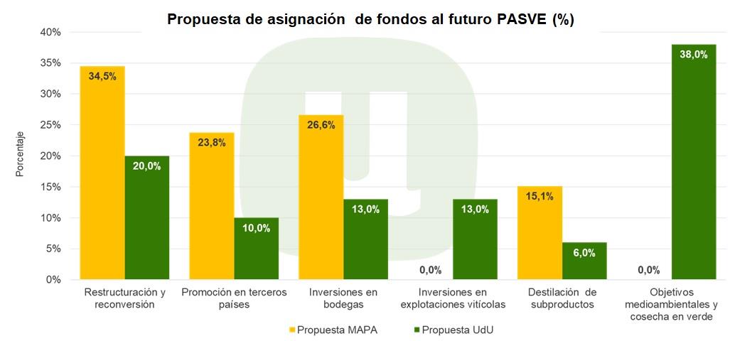 Unión de Uniones de Agricultores y Ganaderos, ante la definición de la nueva estructura del Programa de Apoyo al Sector Vitivinícola Español (PASVE), reclama la reorientación de fondos hacia los viticultores profesionales. La organización agraria propone la inclusión de medidas agroambientales, cosecha en verde e inversiones para explotaciones vitícolas entre las que contempla este programa sectorial, las cuales deben ser financiadas detrayendo fondos de otras medidas cuyos beneficios no llegan al productor.