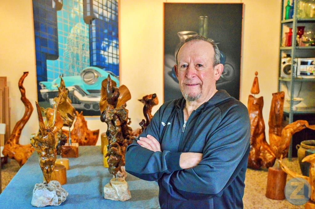Al final hablamos de su feliz incursión en el mundo del humor con José Mota, aunque ahora por la pandemia esta faceta tiene aparcada. “Sigo en contacto con Jose. Está elaborando un guión para una película y me ha pedido que colabore con él. Ya le estoy preparando algunas cosas y trato de hacerlo lo mejor posible porque Jose es una persona tremendamente exigente. Pero me hace ilusión trabajar con él y me obliga a hacer cosas. Ya llevamos treinta años haciendo cosas juntos”. Aunque la entrevista tenía como motivo principal la escritura, acabaremos recalando en su maravilloso estudio de pintura y escultura donde también guarda una curiosa colección de instrumentos musicales. Otro momento agradable con un hombre que no para de sorprendernos.