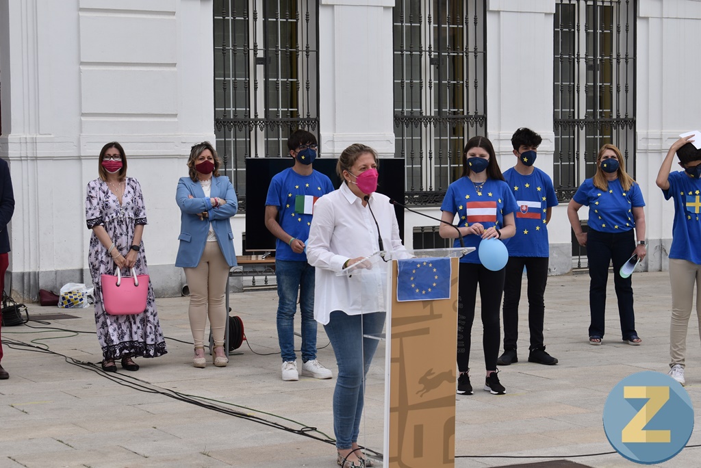 La alcaldesa, Inmaculada Jimenez, ha felicitado al Instituto Eladio Cabañero por un actividad que “han preparado con mucho cariño. Europa es importante y sus normas y decisiones repercuten en nuestras vidas. Para Tomelloso Europa ha sido muy importante en los últimos cuatro años y el ejemplo es esta plaza de España que fue remodelada gracias a una subvención de los fondos Feder. Y gracias a estos fondos en los próximos meses veremos remodelado el mercado de abastos. Por tanto es un orgullo celebrar este Día de Europa y más en Tomelloso que mira con entusiasmo todo lo que pueda venir de Bruselas. Estaremos atentos y expectantes para conseguir más cosas para nuestra ciudad”.