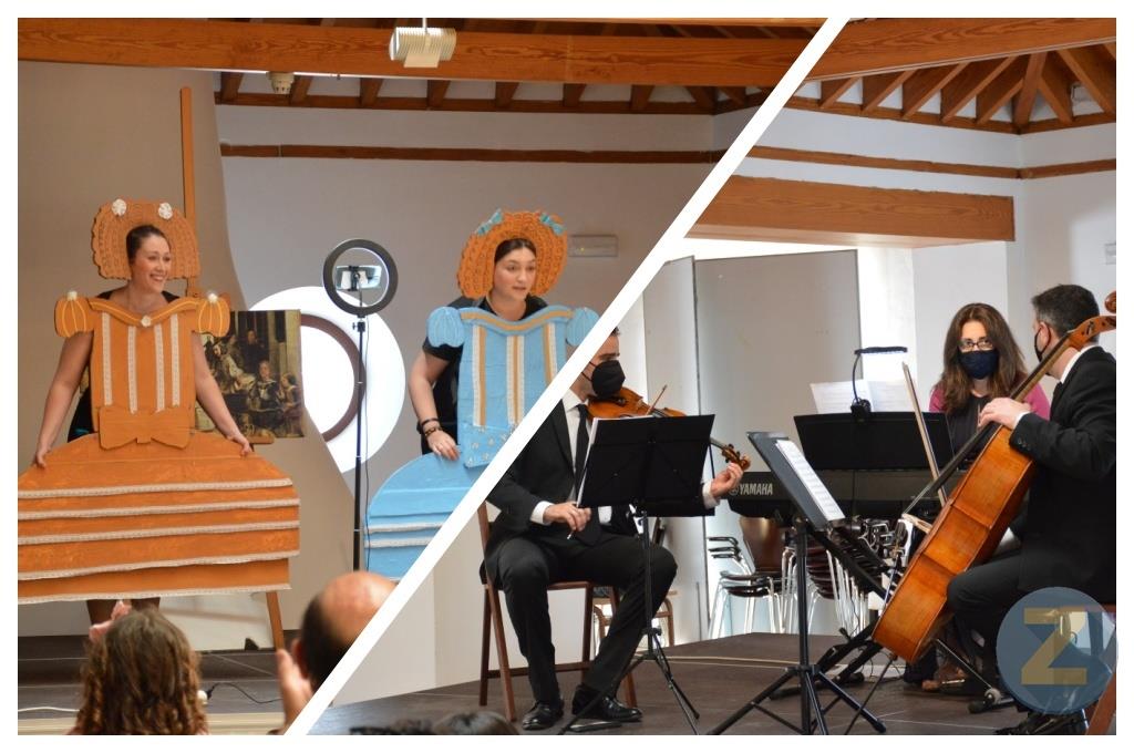 La música, como decimos, también tuvo lugar en la programación. En la Posada de Los Portales, Alberto Palomino al violonchelo, Marieli Blanco al piano y Arturo Sánchez al violín ofrecieron el concierto “Exposición de Géneros: de Telemann a Queen”. A este fue al recital que asistimos y se notaba que el público tenía ganas de música, y de vida. Los músicos fueron explicando las distintas piezas que interpretaron, de manera didáctica y entretenida.  Los músicos tocaron, “La sinfonía de El Mesías”, de Haendel; la “Suite del Quijote”, de Telemann; Salut d'Amour, de Elgar; “El Cisne” de Camille Saint-Saëns; la barcarola de “Los cuentos de Hoffman”, de Offenbach; la “Jota de las Ratas”, de Chueca; “Por una cabeza”, de Gardel; “Oblivion” de Astor Piazzolla; Can't Help Falling In Love, de Elvis; una pieza celta, “Commond Grown”; “Palmeras en la nieve”, ganadora de un Goya y, para acabar “Viva la vida!”, del Coldplay, como no podía ser de otra forma. Y el bis fue “The Show Must Go On”. De Queen.
