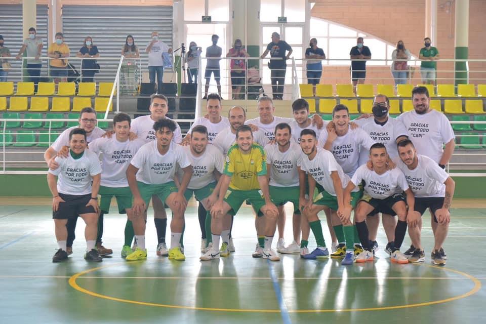 Aprovechando el último partido de liga, que finalmente no se celebró por incomparecencia del Frutas Doña Ramoncita de La Solana, los directivos, técnicos y jugadores del Tomelloso FS rindieron un emotivo homenaje a su capitán, Antonio Romero, con motivo de su retirada del fútbol-sala federado.