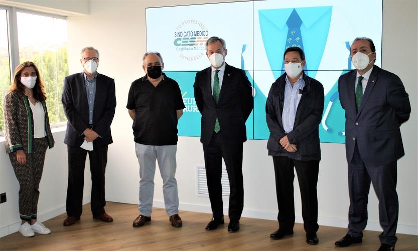 Esta visita ha tenido lugar en los Servicios Centrales de Eurocaja Rural, lugar donde el presidente de la entidad financiera, Javier López Martín, recibió al presidente del Sindicato Médico de Castilla-La Mancha, Miguel Méndez-Cabezas Fuentes, al Secretario General, José Luís Jiménez Fermosel, la Vicepresidenta Rosa Sarabia Fernandez y al tesorero, Manuel Ruiz González. Una visita a la que se sumó igualmente el director territorial de Eurocaja Rural en Ciudad Real, Germán Muñoz Sánchez.