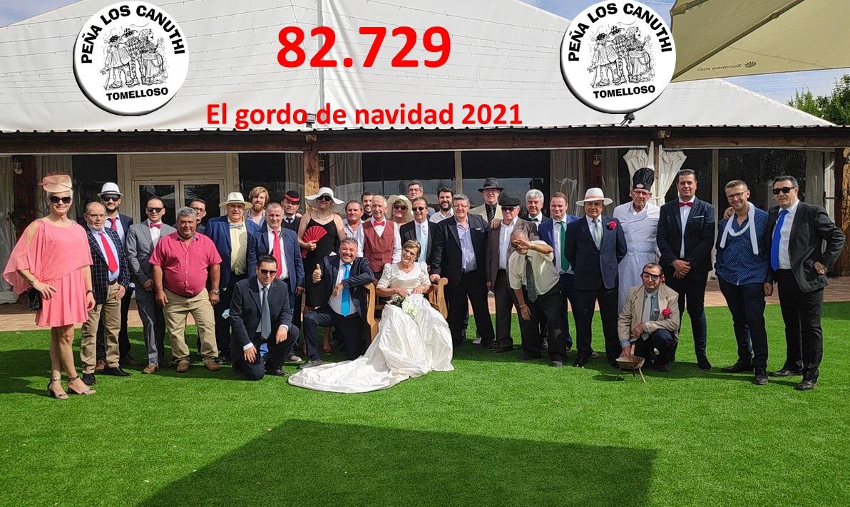La pandemia no ha terminado y todavía hay que extremar las precauciones pero estas graduales apariciones de colectivos como los Canutthi nos dicen que la anhelada normalidad no está tan lejos como parece. Aparecen todos en la foto que acompaña este artículo, ataviados con elegancia, como merece el gran acontemiento que siempre es una boda y con el 82.729 sobre sus cabezas, convencidos de que será el gordo este año.