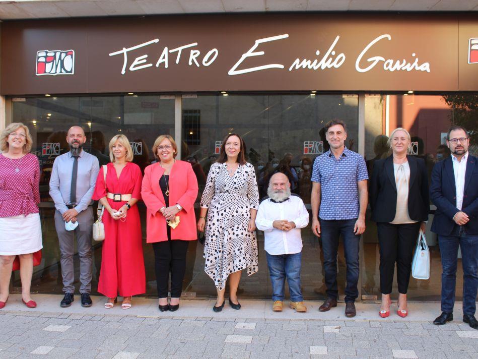 La fachada del Teatro Municipal ya luce con el nombre Emilio Gavira. La alcaldesa, Rosa Melchor y el propio actor, han descubierto el rotulo con la inscripción Teatro Emilio Gavira.