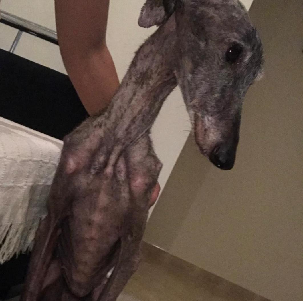 La  galga “Alma” ha viajado desde Tomelloso a Madrid para su ingreso de urgencias en la clínica Puchol. Alma tiene leishmania, desnutrición, anemia y hemorragia en algún sitio que no logran encontrar. “Alma” fue encontrada por una joven de Tomelloso en las cercanías de Argamasilla de Alba. Antes ayudaron también a “Bosco” un galgo que encontraron en Arenas de San Juan