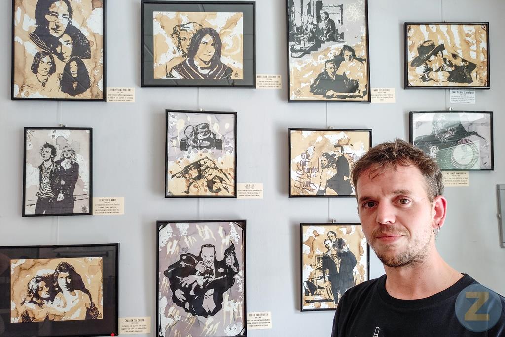 técnica de pintura en la que usa café, vino y tinta. Este sábado se ha inaugurado