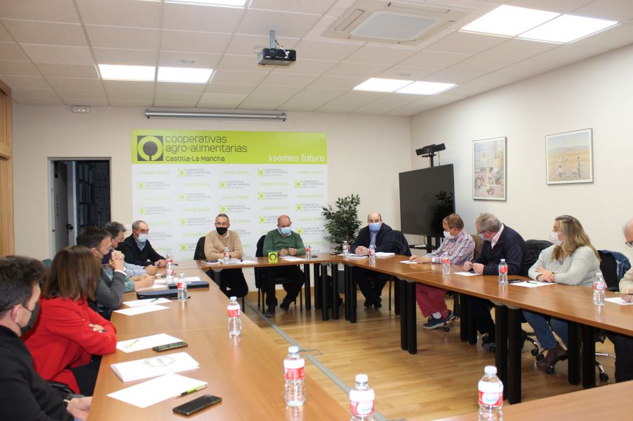 El director El director de Cooperativas Agro-alimentarias Castilla-La Mancha, Juan Miguel del Real, junto al portavoz de agua de la organización, Julio Bacete y el responsable de Medio Ambiente de la organización, Jacinto Tello, se han reunido esta semana con los representantes de las Comunidades de Usuarios de Aguas Subterráneas (CUAS) de Campo de Montiel, Campo de Calatrava, Mancha Occidental 1, Consuegra-Villacañas, Mancha Occidental 2, la Federación de Regantes de Castilla-La Mancha (Ferecam) y la Asociación de Afectados por la no legalización de pozos a agricultores a título principal y explotaciones prioritarias.