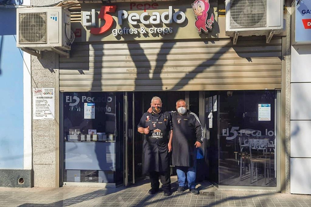 José Ángel Perona y Pepe Pérez ha vuelto a hacer este lunes lo que mejor saben, intentar llegar a todas las asociaciones y colectivos que los necesitan. Así, este lunes se están repartiendo en El Quinto Pecado 110 almuerzos compuestos por una ración de macarrones con atún, un pincho de tortilla y una naranja a usuarios de Fundación Ceres.