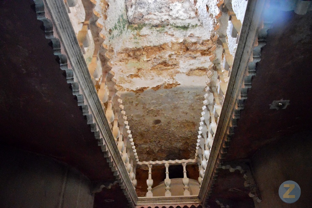 Resalta un balaustre ornamentado con una moldura horizontal y una cornisa estriada que se encuentran en perfecto estado de conservación. Entre tinajas aparecen unos rabos estriados que demuestran que los dueños cuidaban todos los detalles y nos llaman la atención unos pequeños arcos y columnas con capital que están en la parte alta. Nos topamos con ménsulas y unas pequeñas estrellas que resaltan sobre el techo del empotrado pintado en color sanguina .
