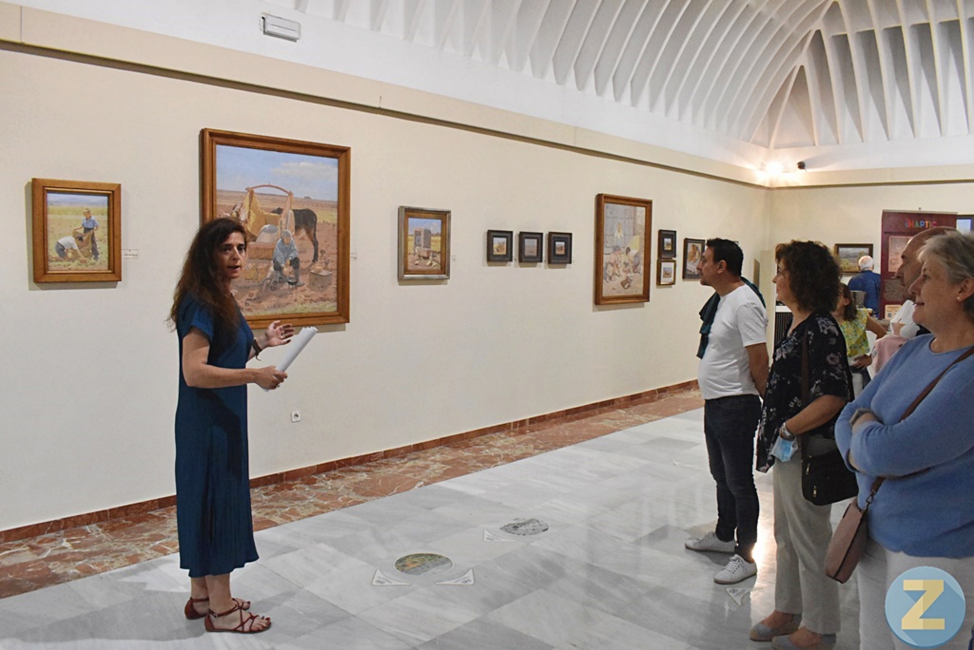 La visita en el López Torres, seguida por una veintena de personas, empezó en el exterior. Dulce Serrano aportó curiosos datos de un recinto que se utilizó como cementerio hasta la segunda mitad del XIX, que albergó también el teatro Echegaray, el pósito de cereales, un cine y en años más recientes un colegio. Ya en el interior, se visitó la sala de los dibujos de López Torres donde se pudo ver como el maestro fue perfilando su técnica y afloró pronto un talento que tuvo como mentores a Ángel Andrade y Francisco Martínez Ramírez “El Obrero” que aconsejaron al que estudiara en una Academia.