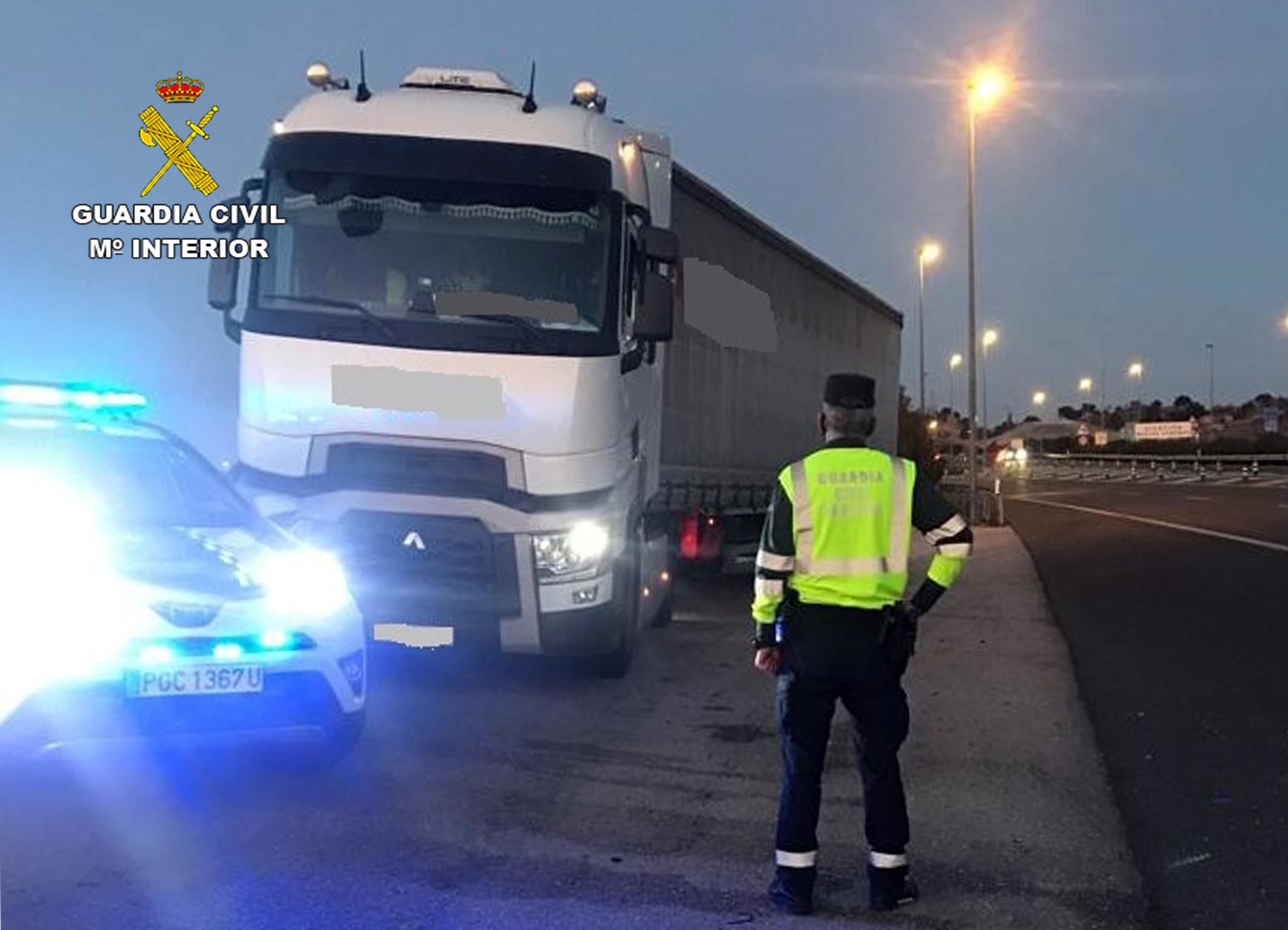 Establecido inmediatamente el oportuno dispositivo, agentes del citado Subsector de Tráfico consiguieron interceptar minutos más tarde al vehículo infractor a la altura del kilómetro 1’000 de la carretera CR-5214 (A-4 – CM-4117), en el término municipal de Valdepeñas (Ciudad Real), no pudiendo impedir que, en el preciso instante de la parada, el vehículo articulado sufriera una salida de vía parcial con escasos daños materiales.