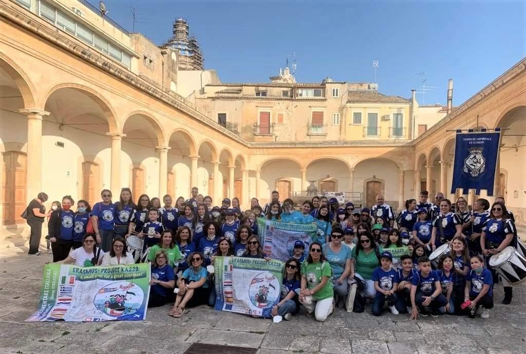 Las delegaciones, acogidas con un caluroso saludo y bienvenida por el concejal Dante Di Trapani, participaron en un recorrido turístico por las calles del centro histórico, durante el cual pudieron admirar los principales lugares de interés histórico y arquitectónico y conocer su historia, gracias a una guía excepcional: la madre de un alumno de la escuela primaria. A las 6 de la tarde todos se reunieron en la Galería de Arte. Un gran número de alumnos acompañados por sus familias, al entrar en la Pinacoteca se vieron literalmente abrumados por una poderosa energía positiva procedente de la vigorosa percusión de los Tamburi Imperiali de Comiso, que impregnó el cuerpo y la mente de todos los presentes. Fue imposible quedarse quieto ante una potente actuación que emocionó y envolvió a grandes y pequeños al son del baile, poniendo fin a la primera y electrizante jornada Erasmus+.
