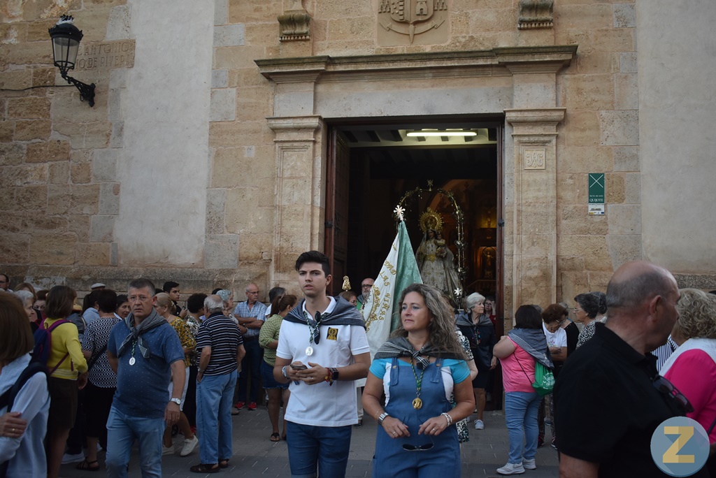 Este domingo, a las ocho en punto de la mañana, la Patrona salía de la Iglesia de La Asunción de Nuestra Señora. Un repique de campanas y un prolongado aplauso han saludado la salida de la imagen en ese momento siempre tan emotivo y sobrecogedor. Poco antes se habían lanzado cohetes para avisar de la salida. La comitiva estaba encabezada por las servidoras de la Virgen portando la bandera de la Hermandad y tras ellas marchaban el presidente, Alejandro Ramírez; la alcaldesa, Inmaculada Jiménez y el párroco de La Asunción, José Ángel Martín.