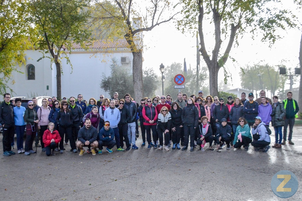 Poco después de las 9 y media de la mañana, con niebla, fresco y barro tras las tormentas del sábado, los caminantes salían de Pinilla dispuestos a recorrer casi 13 kilómetros por caminos agrícolas entre viñedos. La actividad tiene también un importante aspecto solidario dado que el importe de las inscripciones va a ser donado a Cáritas. Hemos visto muchas caras conocidas entre los participantes en una ruta en la que también participa la concejala Elena Villahermosa.