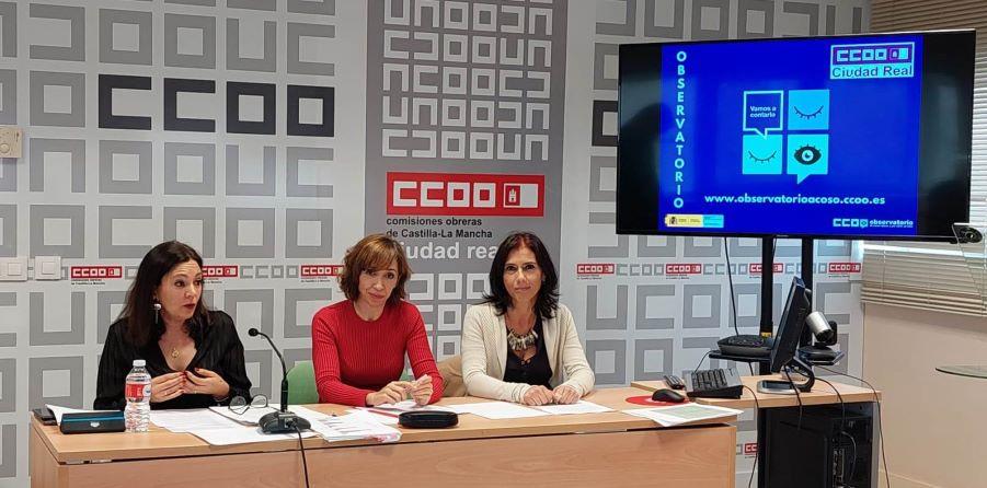 Así lo han manifestado Nunzia Castelli, secretaria de Acción Sindical de CCOO CLM, Esther Serrano, secretaria de Organización de CCOO Ciudad Real, y Valle Cervantes, técnica de Igualdad de CCOO CLM en una rueda de prensa en Ciudad Real en la que han presentado el Observatorio de Acoso Sexual y por Razón de Sexo, -una nueva herramienta de CCOO para luchar contra la violencia de género-, y han explicado las novedades legislativas en materia de protocolos y los nuevos derechos reconocidos para las víctimas de acoso sexual laboral tras la entrada en vigor de la Ley 10/2022 de 6 de septiembre, así como sobre la implantación de planes de igualdad en las empresas.