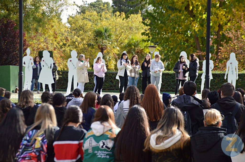 Este viernes, Día Internacional de la Eliminación de la Violencia contra la Mujer, el Parque de la Constitución ha acogido el acto institucional de conmemoración del 25N. El escenario de los jardines del parque mostraba la silueta de 12 mujeres, pintadas de blanco y cada una de ellas con un clavel blanco representado a las 38 víctimas de la violencia de género durante 2022. Han clamado contra esta lacra los centros de educación secundaria de la ciudad y colectivos como Fundación Ceres, AFAS, Fundación Kirira o Cruz Roja. La concejala de Igualdad Montse Moreno ha conducido el acto y ha leído un manifiesto contra la violencia de género aprobado por el Pleno del pasado mes de octubre. Han asistido, además, la concejala del PP, Inés Losa, también la psicóloga y la técnica del Centro de la Mujer, Isabel Cepeda y Lourdes Clemente.