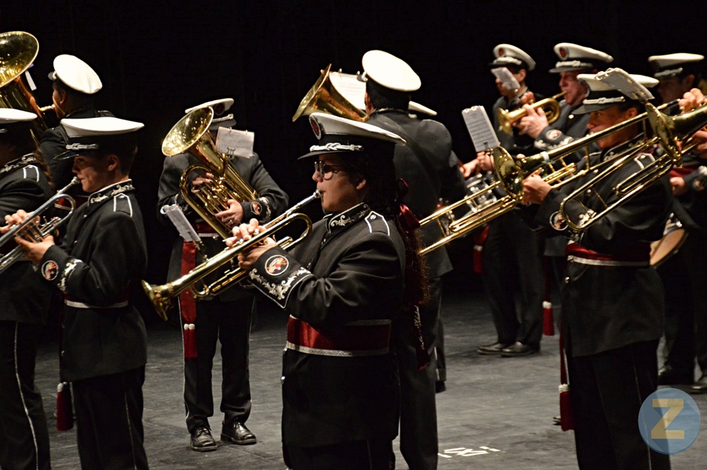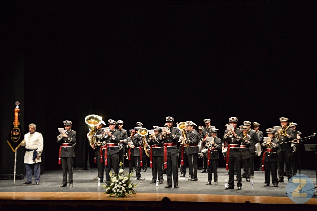 La banda anfitriona, dirigida por José Manuel García ha comenzado su intervención con la marcha ¡Oh pecador!, de Manuel Herrera para continuar con Percador de hombre, de Cristóbal Gabarain. Unidos por la sangre, de Antonio Amodeo y Estrella Reina del Cielo de José Manuel Mena han sido las piezas interpretadas en el siguiente bloque. Otra marcha de Mena, Nuestro Padre Jesús de la Victoria y A los pies de Sor Ángela de Francisco David Álvarez han puesto fin a la actuación de la agrupación local que ha sido también muy aplaudida. Tras el intercambio de obsequios entre las dos formaciones, El Perdón ha interpretado el Himno Nacional.
