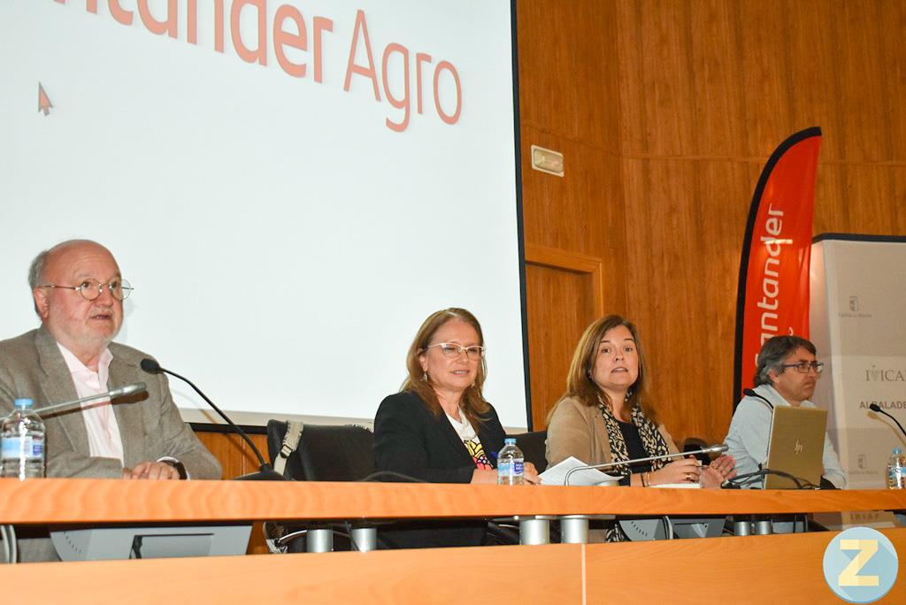 Santander Agro ha organizado este martes una jornada sobre la PAC en el Iriaf. La jornada ha contado con la presencia de la directora general de Agricultura, Cruz Ponce; la directora de Negocio Agroalimentario del Banco de Santander, Lorena Ruiz Ponce; la delegada provincial de Agricultura, Amparo Bremard, el director de Agropopular, César Lumbreras, representantes de cooperativas y organizaciones agrarias y numerosos agricultores que, prácticamente, han llenado el salón de actos del centro.
