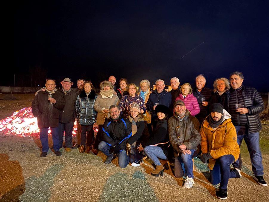 En Bodegas Centro Españolas se mantienen fieles a la tradición de celebrar San Antón en su día. De este modo, ayer lunes, vísperas de San Antonio, la familia que regenta esta gran bodega tomellosera encendió la hoguera. Ni la baja temperatura, ni la desapacible noche impidió que se reunieran un buen grupo de familiares y amigos para disfrutar de esta tradición que, como otras muchas, se van desplazando a los fines de semana. Al abrigo del fuego, las bromas y las conversaciones se fue generando ese ambiente de esta noche tan especial del 16 de enero, que marca el final de la Navidad.