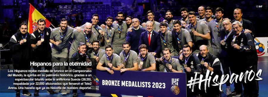 Se había perdido la semifinal ante una gran Dinamarca, y había que jugarse el bronce frente a la anfitriona Suecia. Los de casa estuvieron apoyados por más de veinte mil habitantes, el ambiente era terrible y estaba el cansancio acumulado de un durísmo mundial, con muchos y exigentes partidos en muy pocos días. Pero nada de esto amedrantó a los hispanos que están hechos de un pasta competitiva digna de toda admiración. A este magnífico grupo de jugadores le va la marcha de las grandes citas y siempre dan lo mejor. Ganaron a Suecia por 36 y 39 y se colgaron otro metal.