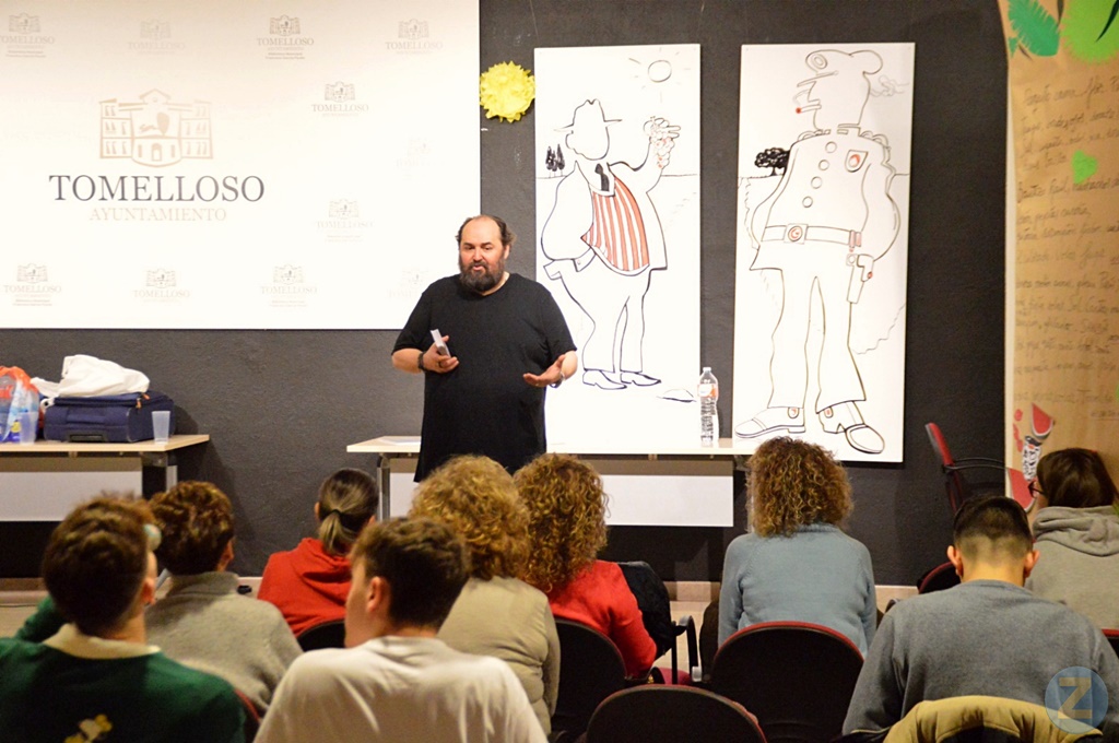 impartiendo el actor, cantante y director, Juanma Cifuentes en la Biblioteca