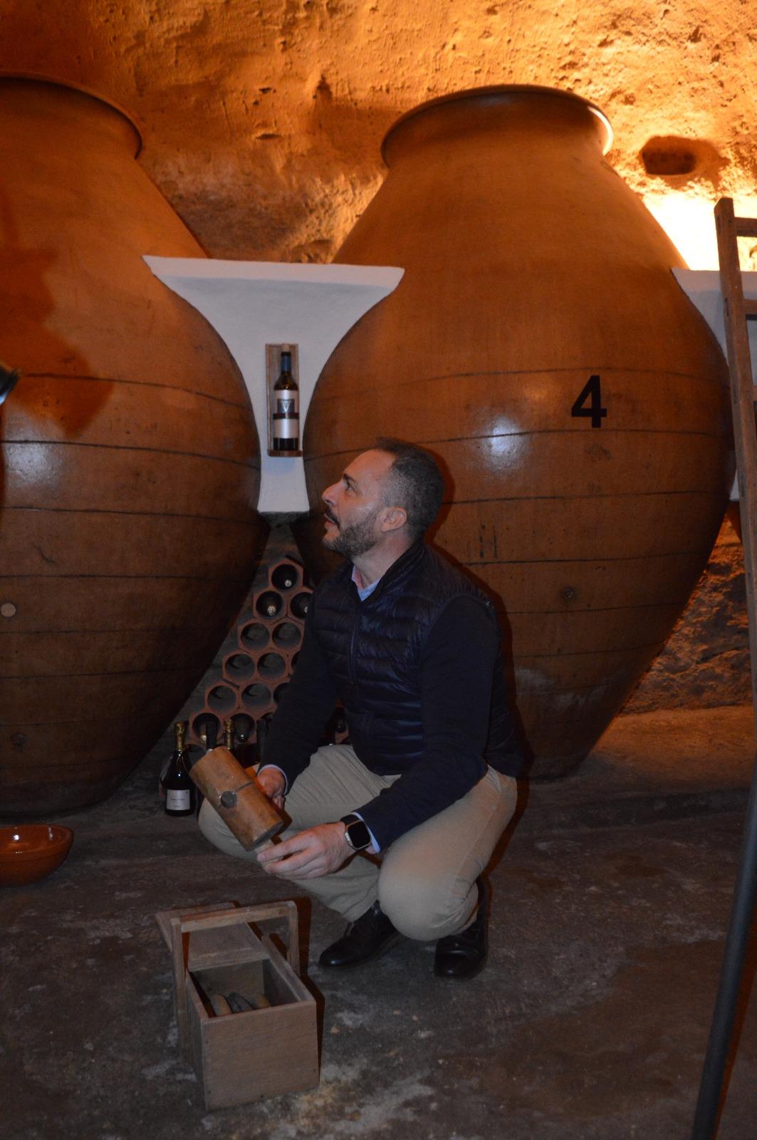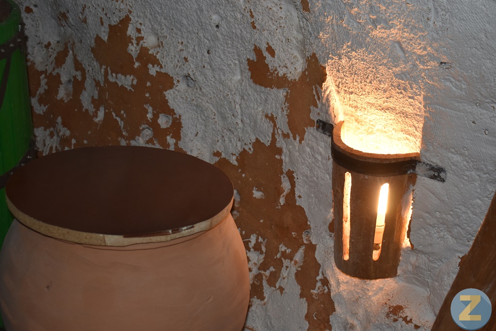 Las paredes mantienen sus tonos terrosos y el techo aparece en la pura tosca. La iluminación también le da un aire mágico a una cueva que alberga muchos detalles curiosos. Una de las faenas más laboriosas que llevó a cabo Antonio fue la limpieza de las tinajas, buscando que resaltara el color de la cerámica. Lo consiguió con un producto y muchas horas de trabajo. También tuvo que sacar la tierra que se elevaba casi medio metro.