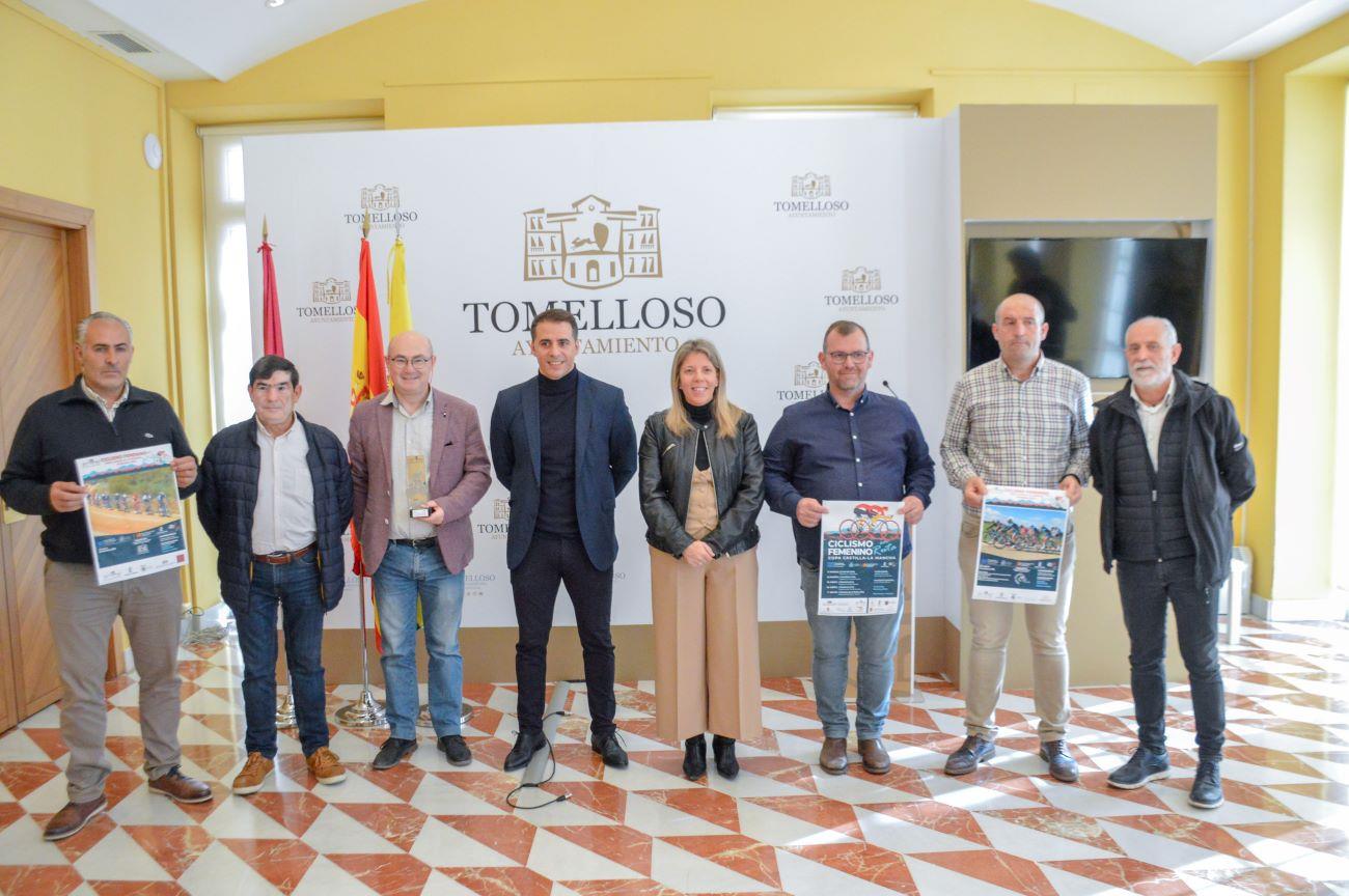 Este fin de semana arranca la I Copa de Castilla-La Mancha de Ciclismo Femenino en Ruta, un acontecimiento deportivo que marcará el futuro del ciclismo en la región. La competición arrancará este sábado en El Bonillo y la segunda prueba se disputará el domingo 12 de marzo en Tomelloso. La Copa la han presentado en el ayuntamiento tomellosero, el director general de Deportes, Carlos Yuste, la alcaldesa de Tomelloso, Inmaculada Jiménez; el jefe de servicio de deportes de Ciudad Real, Luis García-Morato; el presidente de la Federación de Ciclismo de Castilla-La Mancha, Vicente Alumbreros; el concejal de Deportes de Tomelloso, Amadeo Treviño; el concejal de Turismo de El Bonillo, Damian García y Francisco Javier Cerezo, presidente del club ciclista que lleva su nombre.