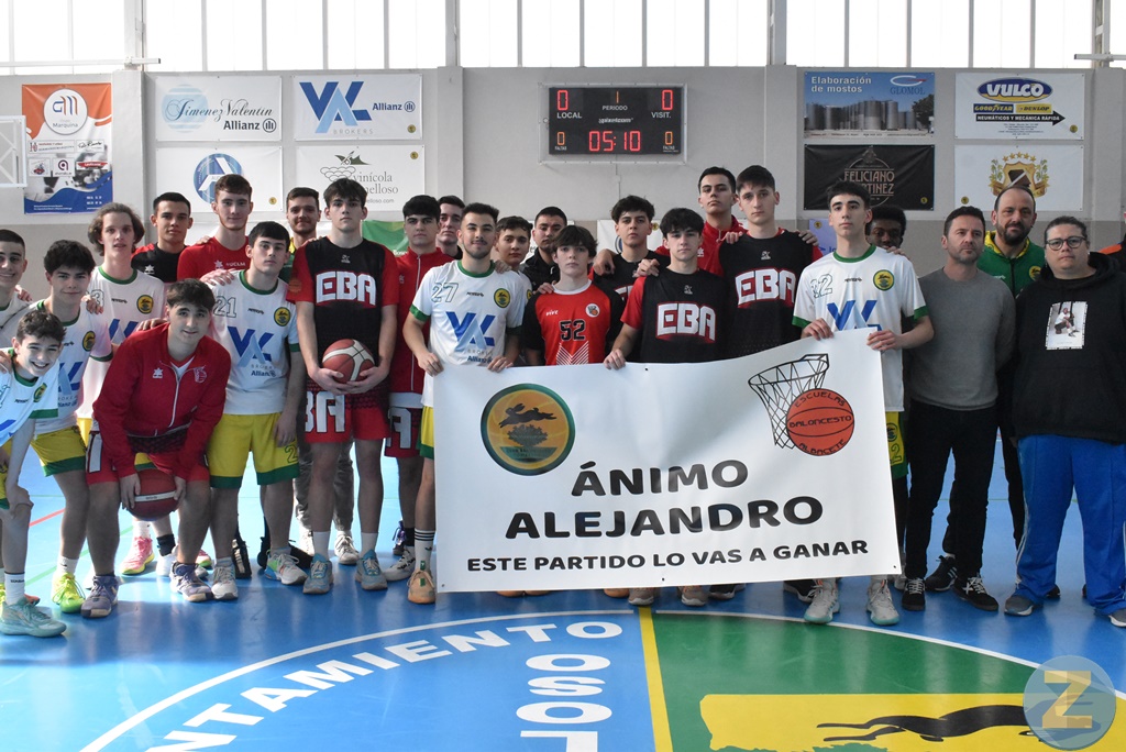 El C.B. Tomelloso junior ha rendido un emotivo homenaje a Alejandro, entrenador del Escuela de Baloncesto de Albacete que resultó herido grave hace ocho días en un accidente de autobús en el que viajaba su equipo. Ocho heridos, uno de ellos grave, fue el balance final del accidente de la Escuela de Baloncesto de Albacete sufrió cuando regresaban de jugar un partido en Tarancón. El vehículo cruzó la mediana de la autovía A-31, a la altura de La Gineta, y volcó en el carril contrario. En su interior viajaban 23 jugadores de los equipos infantil y cadete y dos monitores.