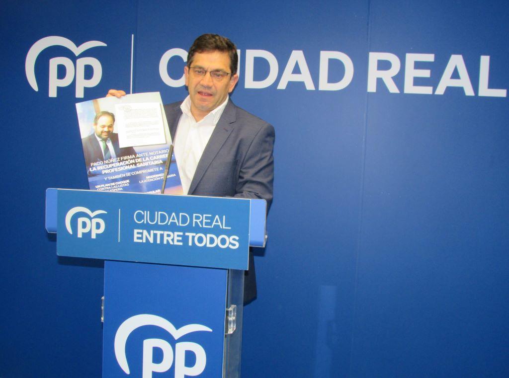 El presidente del PP de Ciudad Real, Miguel Ángel Valverde, ha presentado en rueda de prensa en la capital esta campaña en la que ha asegurado que "la sanidad, como joya de la corona de los servicios públicos es la que más está sufriendo y padeciendo la nefasta gestión del Gobierno socialista de Page que está dando como resultado extraordinarios datos negativos de las listas de espera , las mayores de España, el colapso de la atención primaria y el que los profesionales sanitarios de la región sean los únicos del país que no hayan recuperado la Carrera Profesional a pesar de la promesa hace 8 años por parte de Page que no ha cumplido".