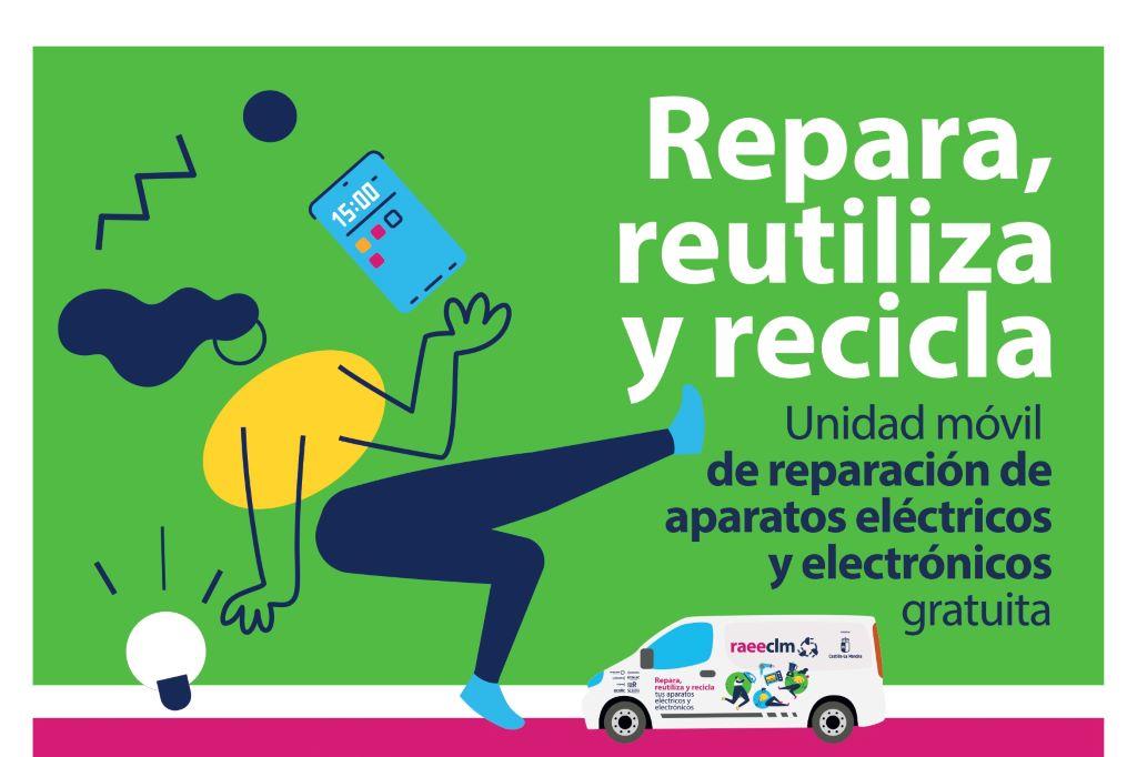 La campaña ‘Repara, Reutiliza y Recicla’, llega mañana miércoles, 22 de marzo a Tomelloso. Un taller-furgoneta itinerante se instalará en la plaza de España, de 10:00 h a 13:00 h y de 16:00 h. a 19:00 h., para que la ciudadanía pueda recibir asesoramiento gratuito para reparar y reciclar sus aparatos eléctricos y electrónicos. Se desarrollarán además diferentes actividades para concienciar acerca de la importancia de reparar para reutilizar y reciclar.