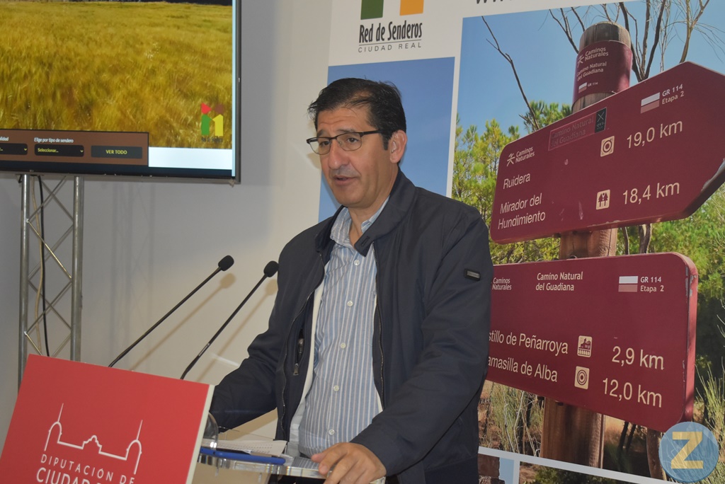 David Triguero ha presentado un proyecto que agrupa atractivas rutas de la provincia, 44 en total. “Es una apuesta por el turismo interior sostenible en nuestra provincia que ponemos en marcha con la colaboración de 55 municipios, con una red de 700 kilómetros, que llegará a todas las comarcas. Estaremos en el Parque Natural de Las Lagunas de Ruidera, el Parque Natural del Valle de Alcudia y Sierra Madrona, en el entorno de los Parques Nacionales de las Tablas de Daimiel y Cabañeros y en distintas comarcas como la de la Mancha, Campo de Montiel, Montes Nortes, Montes Sur , Almadén y Campo de Calatrava, entre otras. Todas las rutas están homologadas por la Federación de Montaña y tienen un valor didáctico por los numerosos datos e información quereflejan los paneles”.