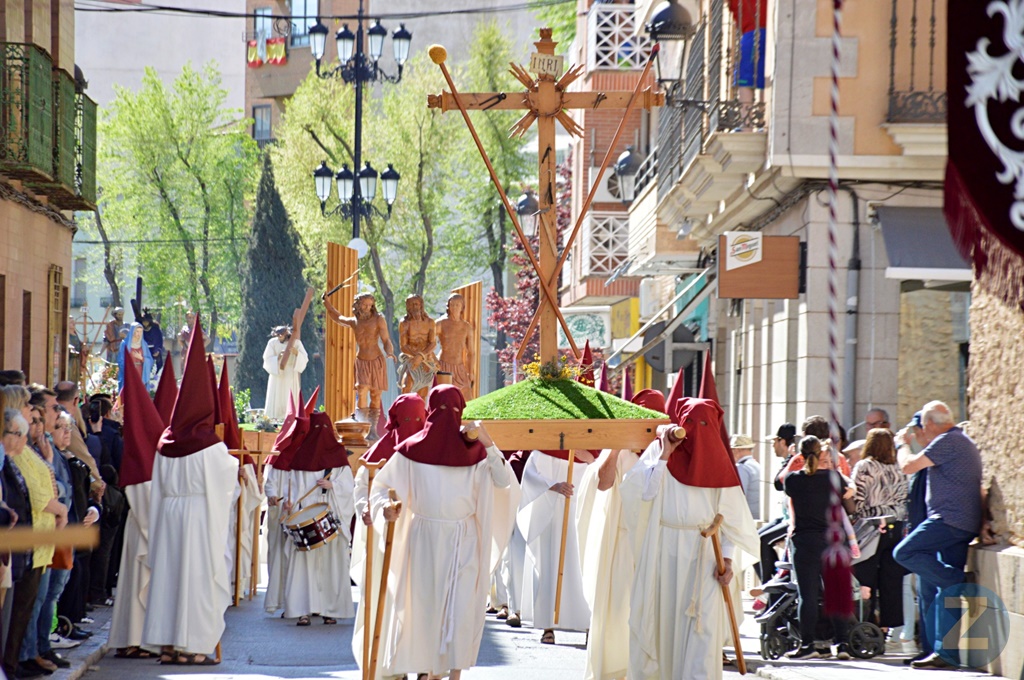 Después ha salido con la Hermandad Jesús con la Cruz a Cuestas Camino del Calvario, con sus nazarenos de blanco y verde. Este Viernes Santo recorren las calles de Tomelloso con su paso titular portado a costal. La Agrupación “Maestro Martín Díaz”, de Argamasilla de Alba, ha puesto el acompañamiento musical a la hermandad.