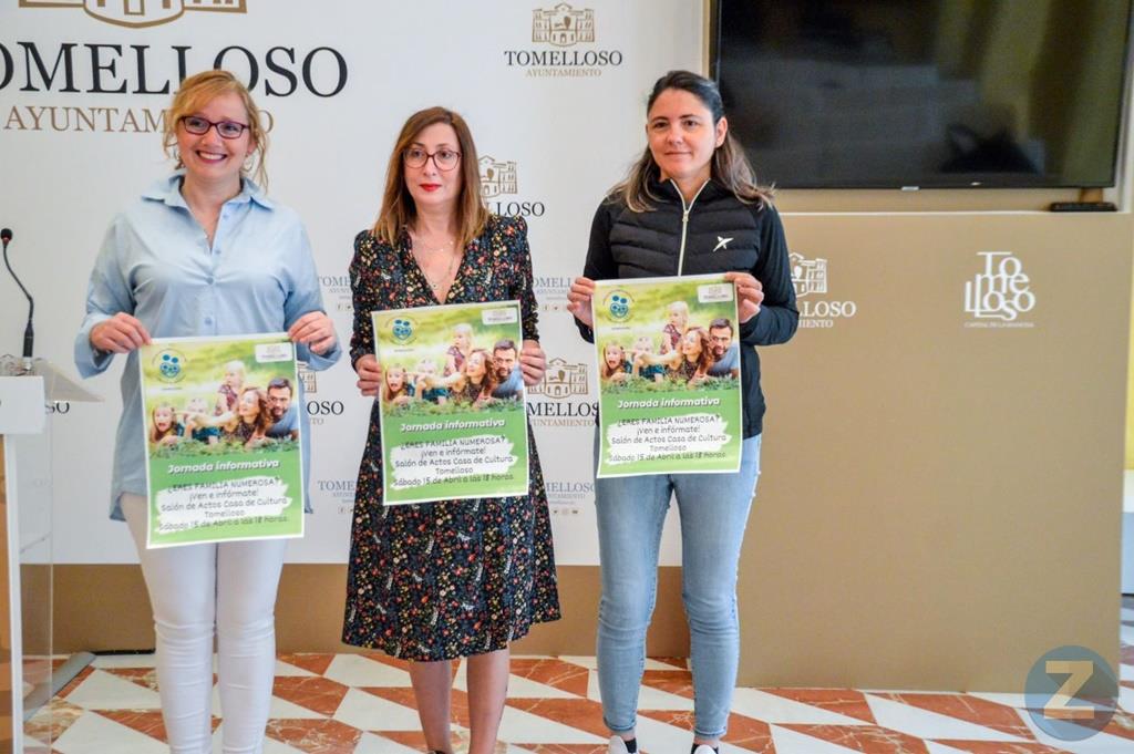 La Asociación Provincial de Familias Numerosas, con sede en Tomelloso, va a celebrar unas jornadas informativas en colaboración con el Ayuntamiento de la ciudad el próximo sábado 15 de abril. En el acto, que tendrá lugar en la Biblioteca Francisco García Pavón a las 18:00h, se va a informar y orientar a las familias en relación a sus derechos y los beneficios que tienen por ser numerosas. Las jornadas, que han presentado la concejala de Servicios Sociales, Montse Moreno y la presidenta de la Asociación, María Victoria Jiménez, forman parte de una serie de actividades informativas que se están llevando a cabo en localidades donde el colectivo tiene familias asociadas.