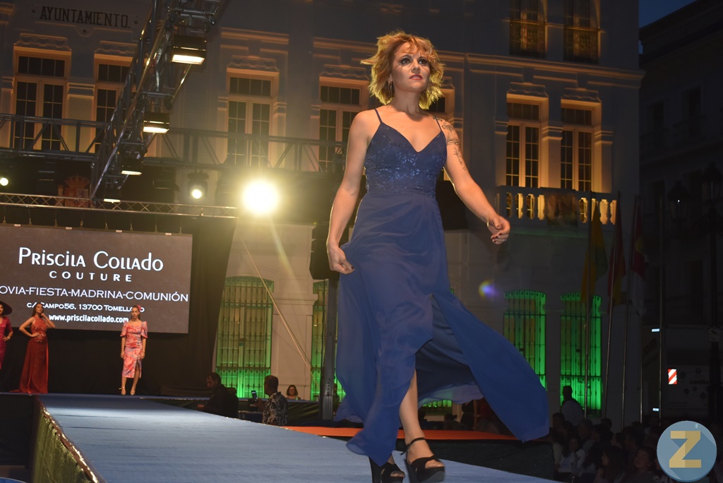 Ha brillado con luz propia la Gran Pasarela de la Moda de la Plaza de España, dispuesta en una espectacular alfombra azul de 35 metros de longitud en la que han ido desfilando comercios que marcan tendencia, mostrando las últimas novedades del mercado. Presentada por Miguel García han participado Amigos de Mayoral, Koker, Ámbar, Ágora, Priscila Collado, Malika Coquette, Martel’lo, Base Bolas Sport, BenibuiShop, finalizando este espectáculo con las novedades de Más Íntimo. Además de poderla disfrutar in situ por casi un millar de personas, se han ido retransmitiendo pequeños vídeos en el Facebook de Promoción Económica Tomelloso. Modelos de todas las edades y tallas, incluidos algunos integrantes de Fundación Cadisla, han protagonizado un magnífico desfile, ágil, bien organizado, con buena música y algunos bonitos efectos especiales. El tiempo ha ido mejorando y al final ha quedado una agradable noche que ha contribuido al mayor lucimiento de los modelos.