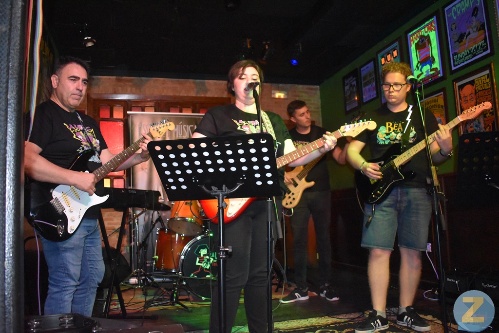Actuaron seis bandas, interpretando cada una de ellas tres o cuatro conocidos temas, dejando patente los progresos de unos músicos que aprenden y trabajan con mucha ilusión. María Perales puso su generosa voz a varias bandas y al mismo tiempo hizo de maestra de ceremonias. El primer grupo en actuar sería Glasgow Cero con Miriam, Teresa, Vicente, Roberto y Rubén que estuvieron magníficos con el gran tema de Freddie Mercury “I want to break free” y otros conocidos temas en los que se entregaron y conectaron con un público que supo reconocer su trabajo.