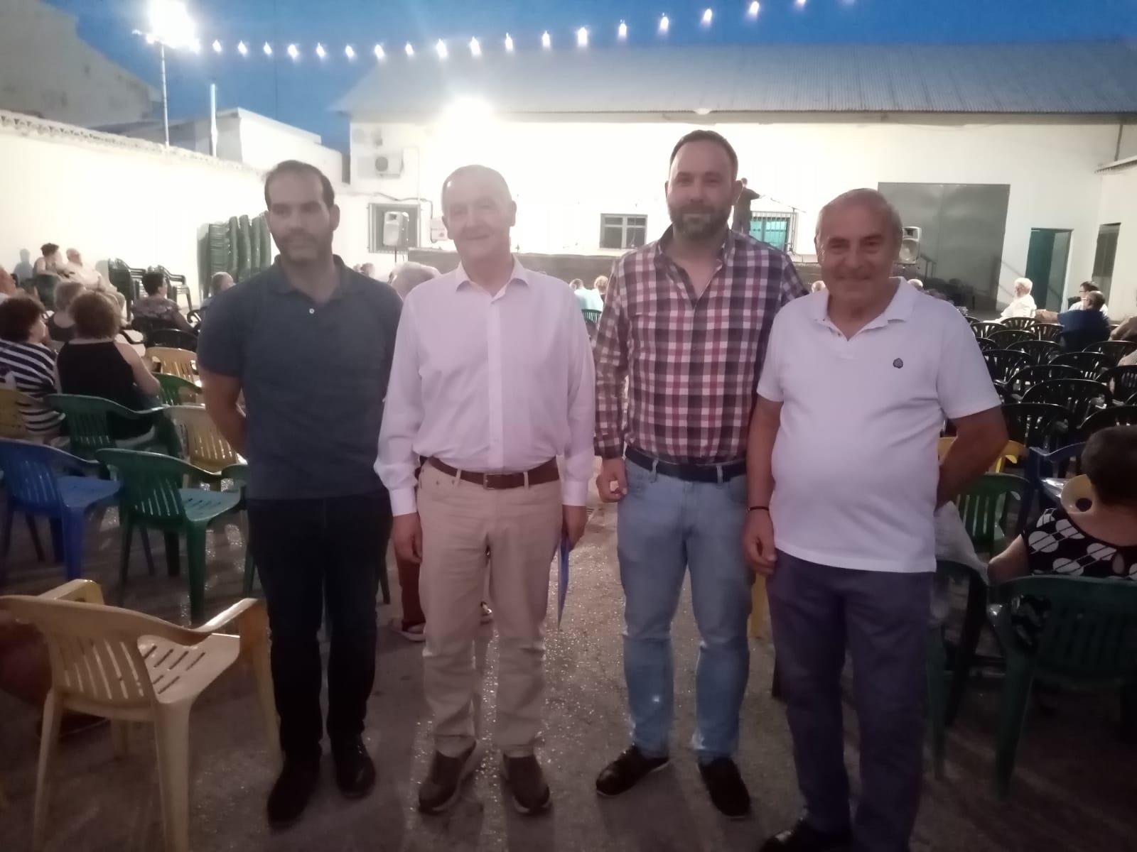Manuel Martín de Almagro fue el gran protagonista en la noche inaugural de las fiestas del Barrio del Moral. El que fuera profesor en el colegio del barrio y otros centros de la ciudad ofreció un pregón cargado de recuerdos, datos curiosos y mucho sentimiento tomellosero. Al término de su intervención el presidente del barrio, Antonio Buitrago, le obsequió con un regalo y lo mismo hizo con el presentador, nuestro compañero de La Voz, Francisco Navarro, que amenizó el acto con soltura y ritmo. También tendría su detalle la empleada del Ayuntamiento, María José.