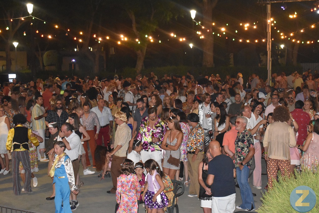 En el parque, Marcos Galván calentó el ambiente y poco a poco la pista se fue llenando y Adrián Osuna hizo su primera incursión por Frank Sinatra, más adelante cautivaría al respetable también con Raphael, Julio Iglesias y Tom Jones. A la una y media subió al escenario Maestronic que ofreció durante más de una hora un repertorio de números conocidos por todos que se bailaban y cantaban con ganas. Los criptanenses tienen un buen directo y durante algo más de una hora tocaron conocidos temas de la época. Después se fueron alternando Adrián Osuna y Marcos Galván, éste pinchando temas de los 60 y 70 y aquel desplegando su show, haciendo las delicias del respetable que tenía ganas de fiesta. Un grupo de los Canutthi hizo una buena imitación de Los Bravos, con El Cuqui llevando la voz cantante, mientras que otros subieron al escenario encarnados en los Village People.