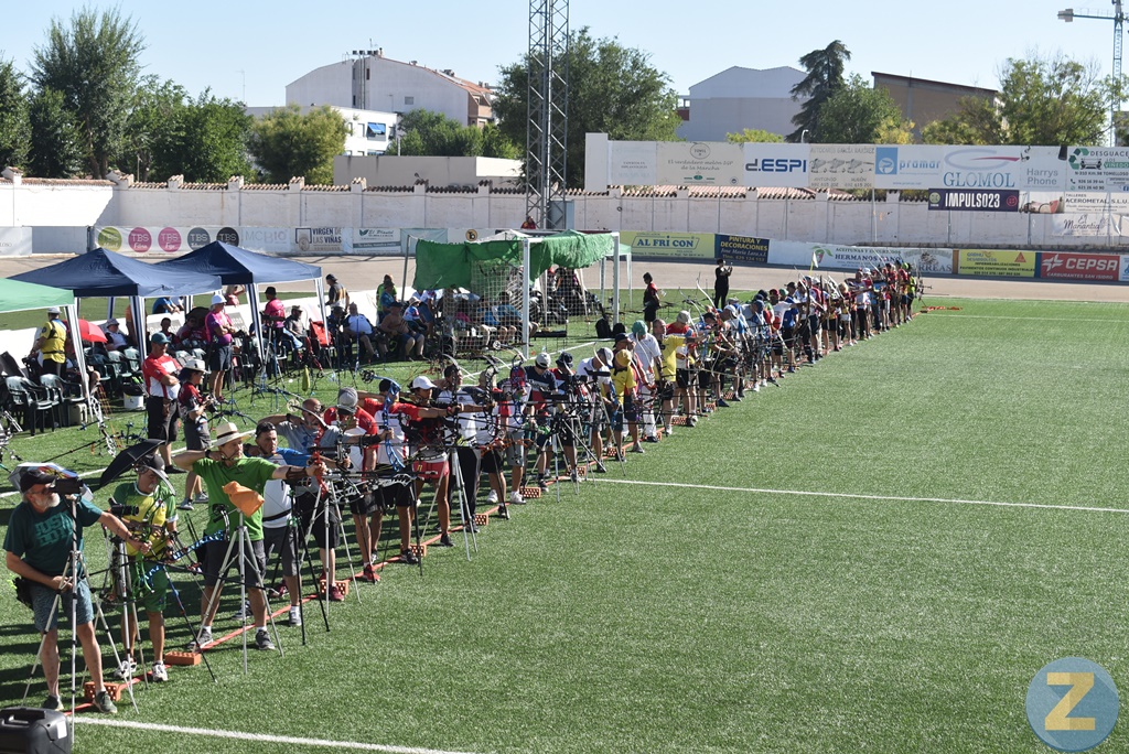 El Estado Municipal Paco Gálvez alberga este domingo el XXV Campeonato de Tiro con Arco al aire libre. Reúne a noventa y cinco participantes procedentes de diversos puntos de la región y el país, con presencia también de arqueros del club anfitrión. La tirada ha dado comienzo poco antes de las diez de la mañana, con los grados del termómetro ya subiendo. Joaquín López Arribas y Elena Gallego Santos-Olmo ejercen de jueces en una competición que se adivina emocionante por el alto nivel de los arqueros.