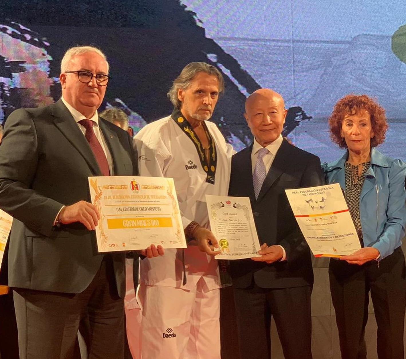 Cristóbal Orea ha sido reconocido por la Federacion Española de Takwondo y el Consejo Superior de Deportes con el título de Gran Maestro de Taekwondo por sus más de 40 años dedicados a esta disciplina. El Congreso se celebró en el pabellón Puerta de Hierro de Madrid el pasado fin de semana. Nada más recibir la distinción, el maestro que lleva muchos años trabajando en su centro de Tomelloso, agradeció el premio que le anima a seguir dando lo mejor por el deporte que ama.