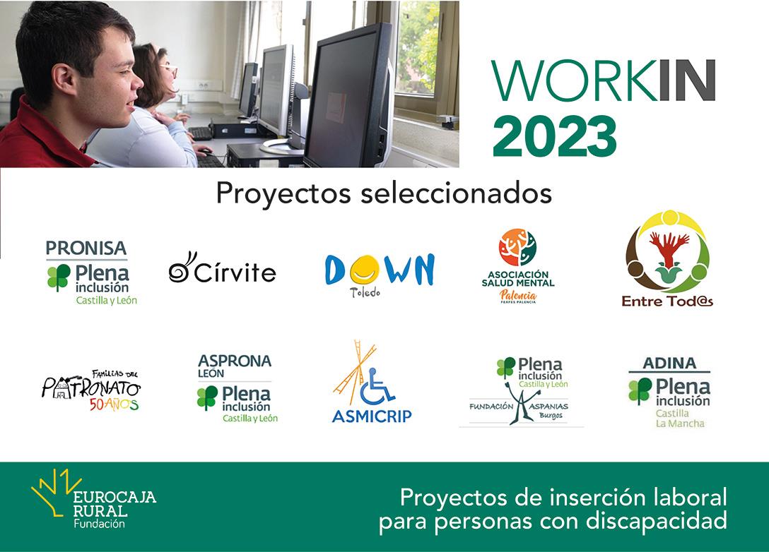 La Fundación Eurocaja Rural convocó el pasado mes de octubre una nueva edición del programa 'WORKIN', ayudas destinadas a proyectos de inserción laboral de personas con discapacidad, así como acciones formativas en competencias profesionales para este colectivo.