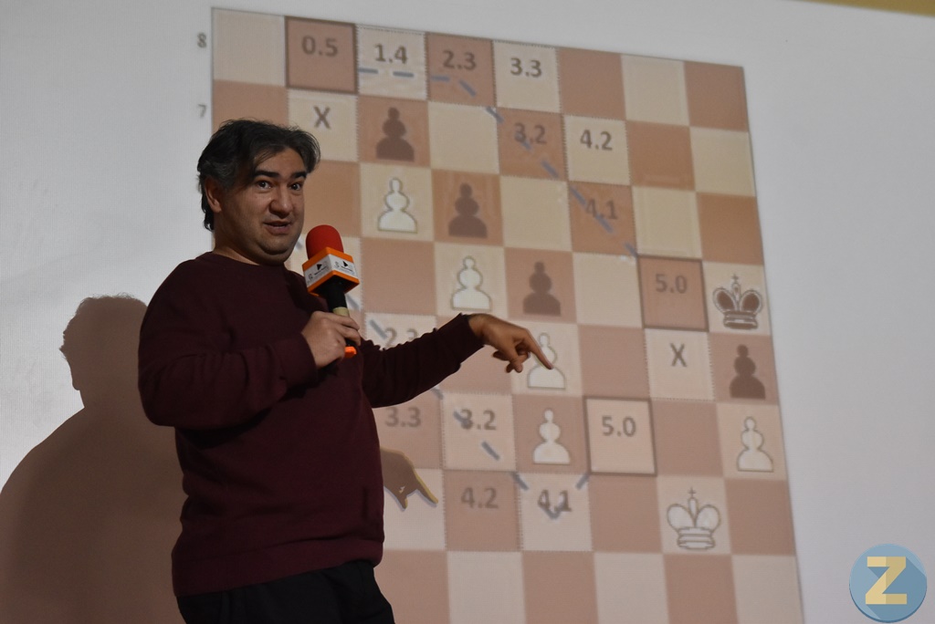 En la conferencia “Ajedrez y matemáticas, dos caras de la creatividad”, Razvan ha ido estableciendo conexiones entre el ajedrez y el pensamiento matemático, presentando los programas matemáticos de análisis que todo ajedrecista emplea. Al mismo tiempo ha planteado la posibilidad de alcanzar el juego perfecto en una disciplina que nació hace cientos de años en la India y que los árabes trajeron a la península ibérica.