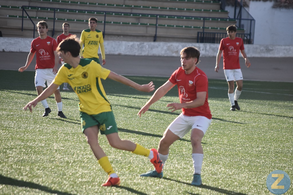 El gol de Moha a la media hora premiaba el mejor juego y mayor ambición de los auriverdes. Echó mucho de menos el equipo a Moha cuando estuvo lesionado y su reaparición está siendo muy saludable para un juvenil que parece recuperar esas buenas sensaciones del inicio de competición. Con ventaja mínima al descanso, el partido se encauzó en el inicio de la segunda mitad. Anduvo listo Jesús Gómez para aprovechar un error del portero y marcar en una jugada que aparece en dos fotografías que acompañan esta crónica.