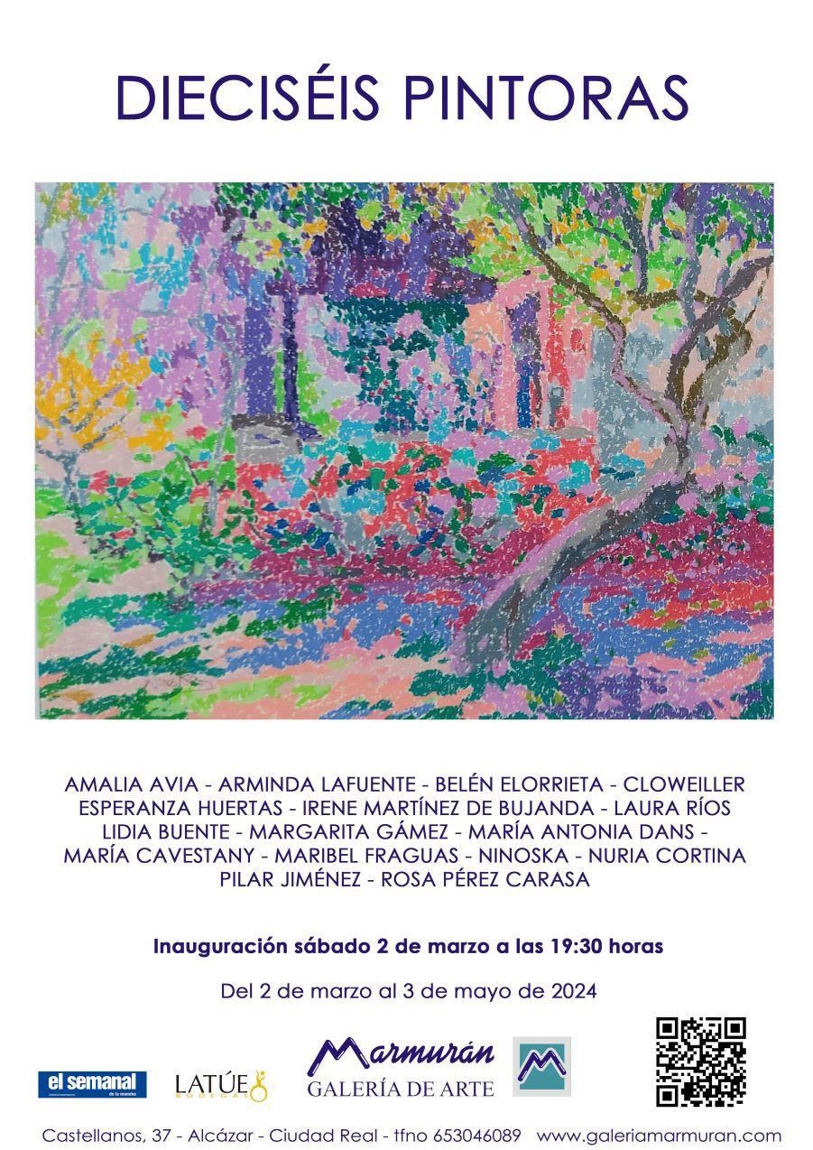 El próximo sábado 2 de marzo a las 19:30 horas en la Galería de Arte Marmurán (Calle Castellanos 37, de Alcázar de San Juan), inauguración de la exposición "Dieciséis pintoras".