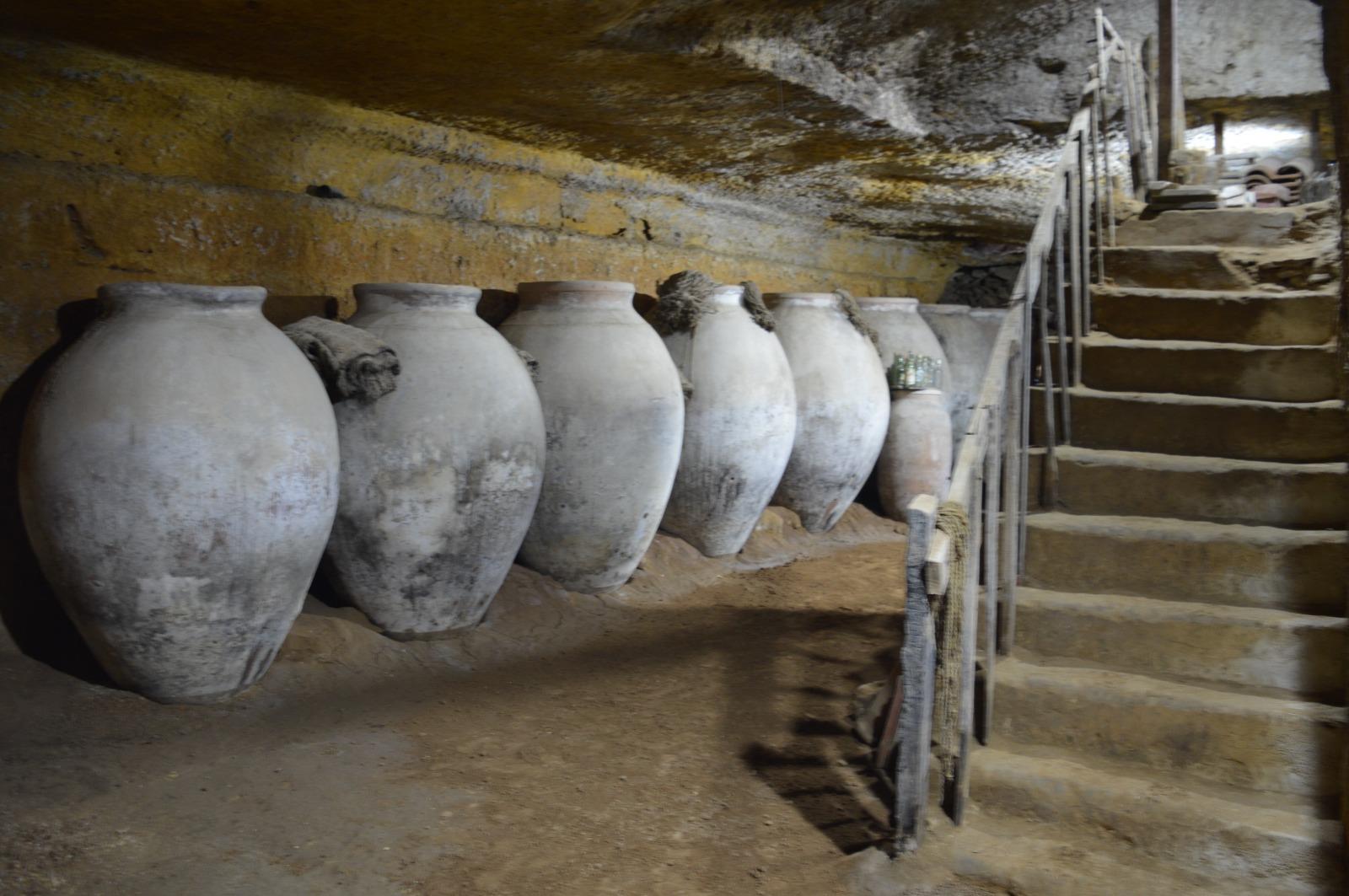 El tiempo parece haberse detenido en la cueva de Vicente Blanco, otra maravilla del subsuelo tomellosero construida en torno al 1850, en los tiempos de aquella incipiente viticultura que aceleraría el desarrollo económico de la ciudad. Antes de bajar a las profundidades de la cueva, el propietario nos enseña ya algunos vestigios de las tradiciones de la ciudad: un pila de piedra, el brocal de un pozo, labrado también en piedra y una colección de antiguas orzas, a cual más bonita.