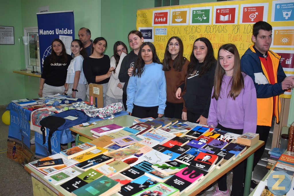 Amparo Nuñez, profesora de Lengua, ha considerado importante “incentivar la venta de libros en una época en que lo digital lo invade todo. Por cada libro que se compra se regala un marcapáginas personalizado y la verdad es que se está vieno movimiento y compromiso por parte de los chicos”. María del Mar ha destacado también la performance que hablen los clásicos organizada por el departamento de Latín y Griego “donde los alumnos de cuarto de la ESO y Bachillerato representan a un personaje clásico y los alumnos pueden dialogar con él”.